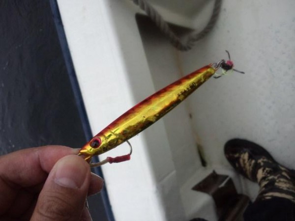 使用ジグは シャウト ステイ 赤金カラー!! サバにはこれが効きます!!