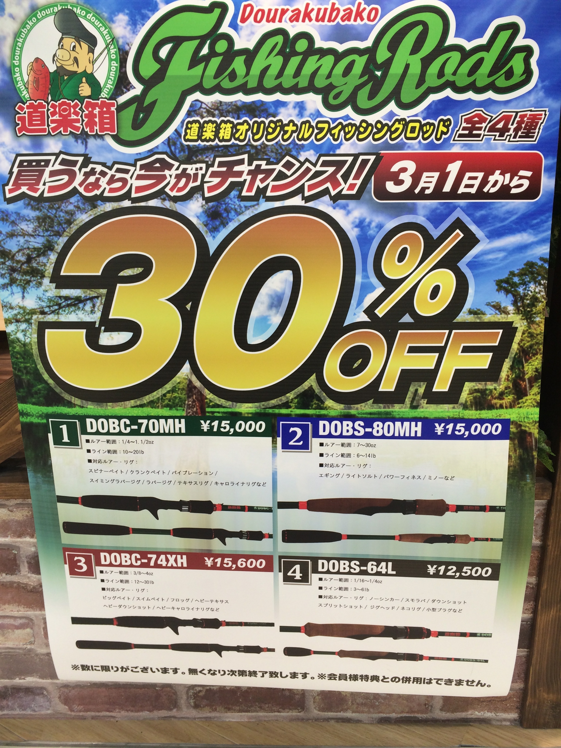3月1日より道楽箱ロッド 全4種30%OFFセール♪(幕張店)