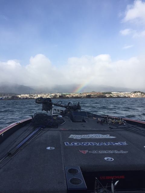 朝から虹がでるほどの悪天候です。(琵琶湖に虹がかかると高確率で湖面は荒れます。)