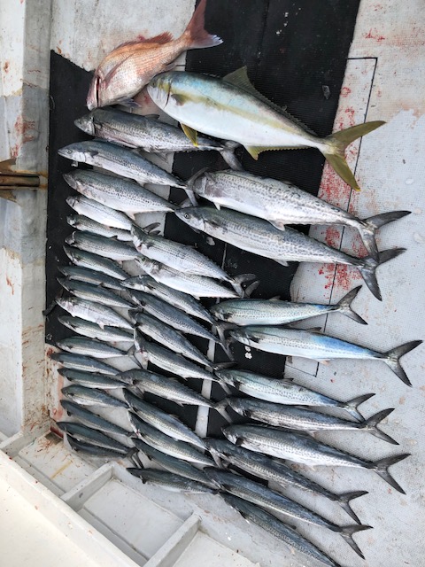 ぼこぼこ釣れるサワラ・サゴシ。船内お祭り状態に。