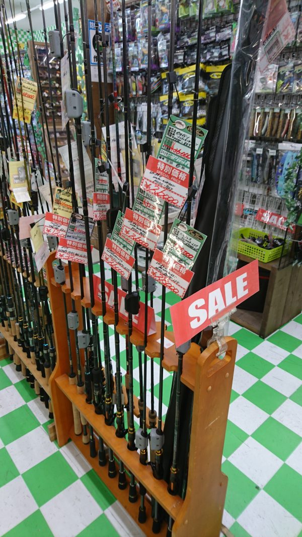 店内一部商品(人気ロッド、リール)を特別価格にて販売中!!