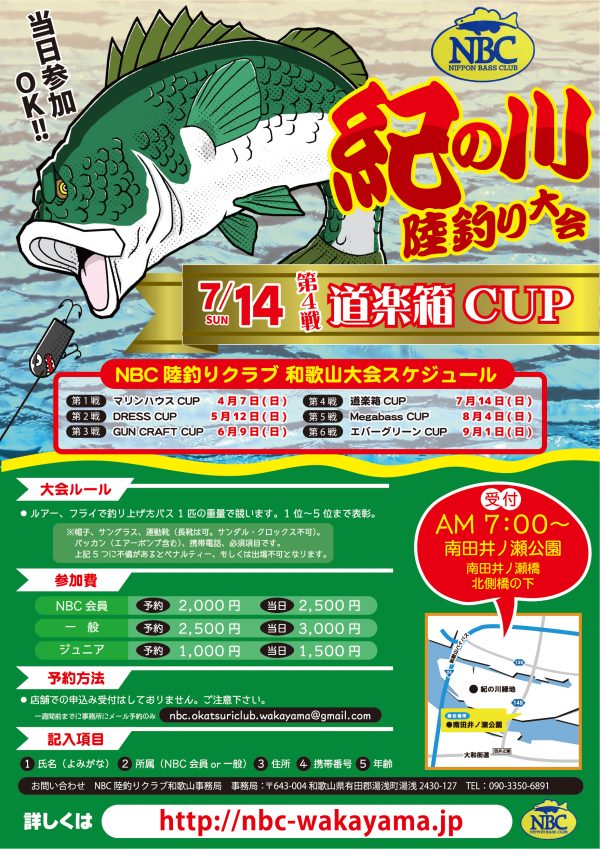 「NBC陸釣りクラブ和歌山 道楽箱CUP」が開催されます!