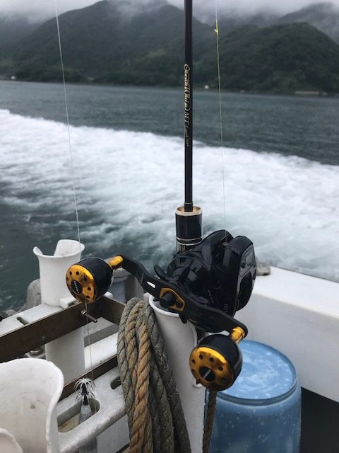 水深は だいたい60m~70m(ポイントによります)、鉛スッテは20号でいけました