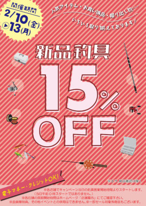 新品釣具15%OFF!