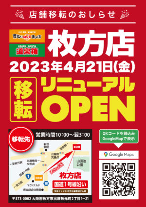 本日、移転リニューアルオープン日です!!(枚方店)