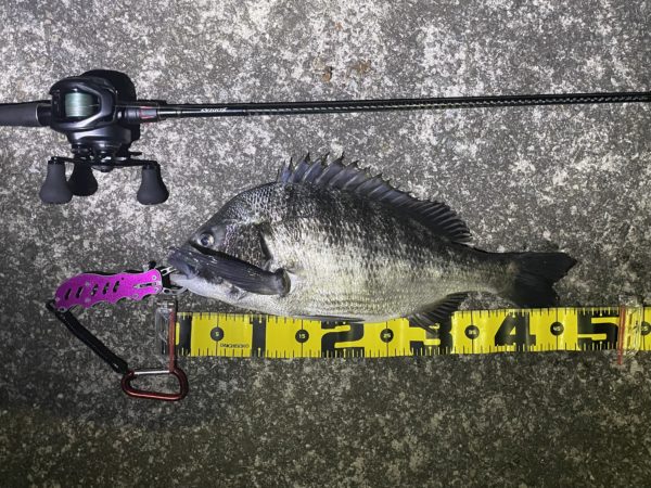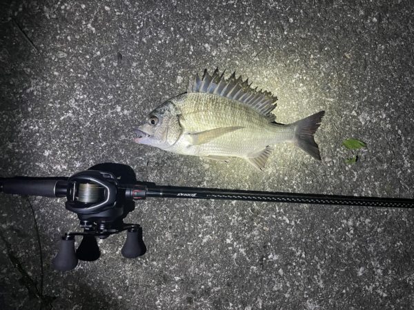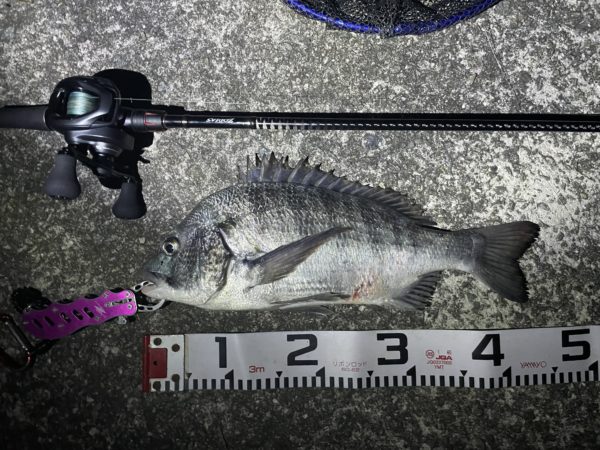 バイブレーションのチョイスが良かったのか、続けて47cmのチヌと30cmほどのチヌをキャッチ!!