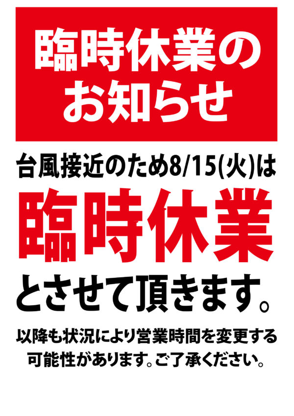 台風7号接近による営業のご案内