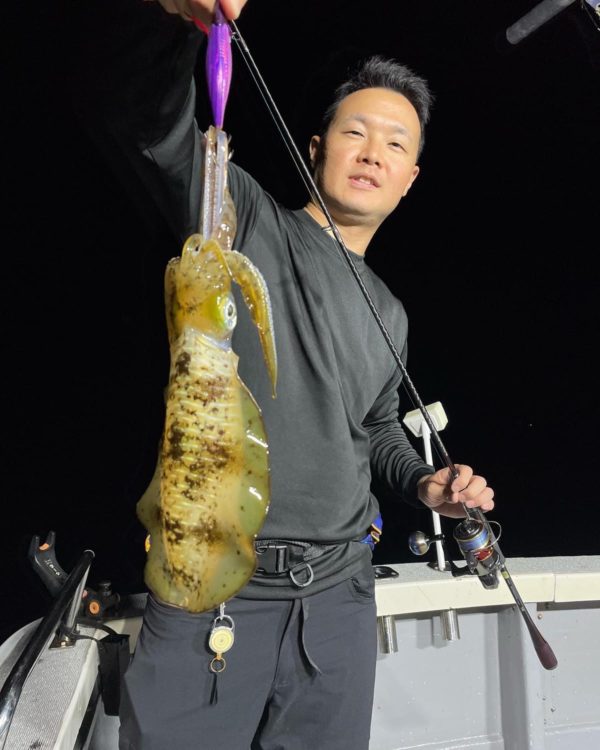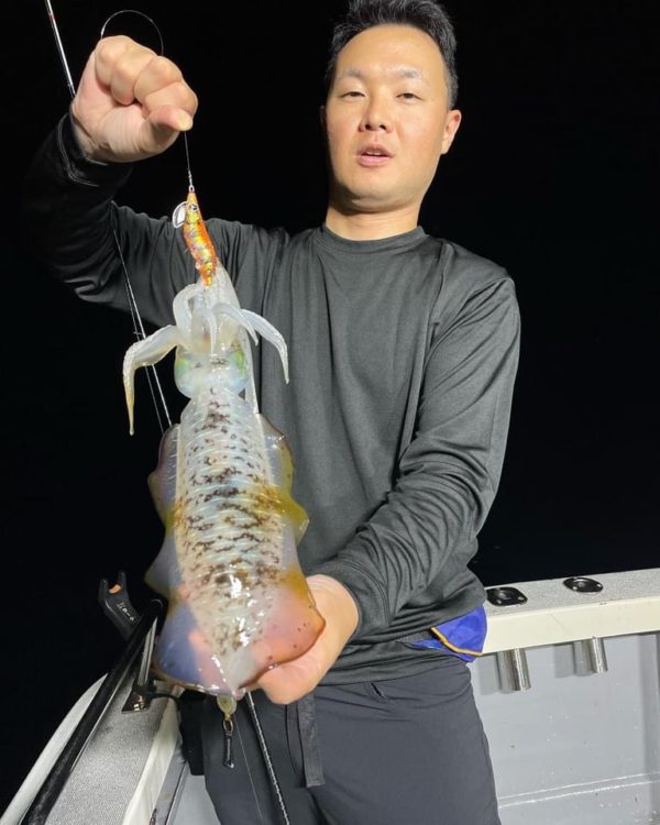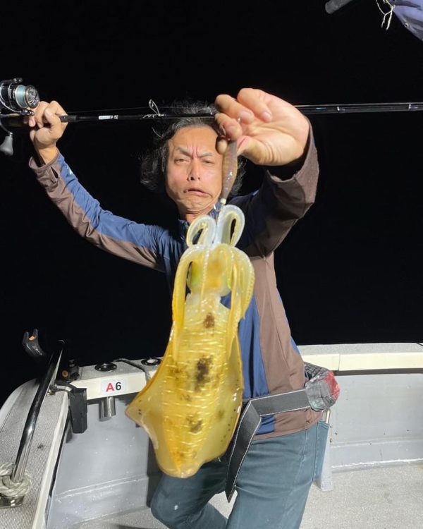 この日はアオリイカの活性も高く、ライト点灯後も船の周りはアオリだらけに。