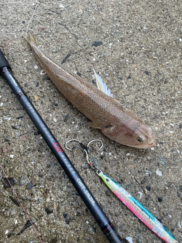 ボトムまで落としてもシオは釣れず、エソが釣れました。