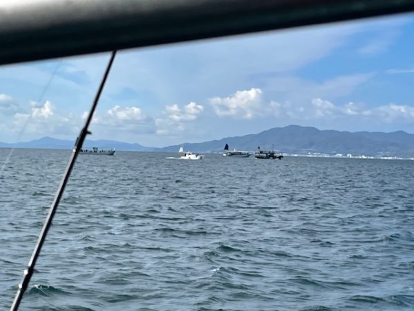 周りにはタチウオ狙いの 船団が、、、 どこもあんまり釣れてないみたいですね