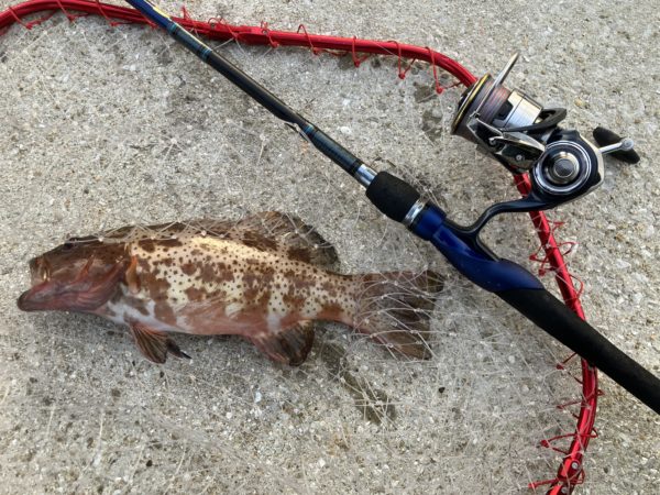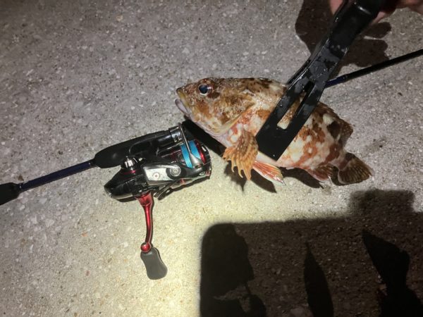 途中でカサゴに挑んでみたり。ロッドが思いっ切り曲がるし潜られたら終わりで気が抜けないし、安上がりに楽しくファイトできました。