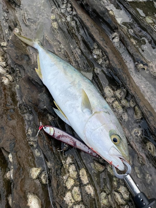 朝マズメの地磯で釣ったヒラマサです!