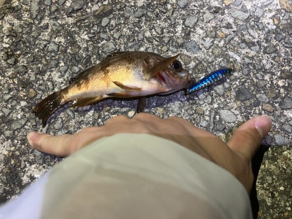 そのまま釣れずに終わるかと思いきやラスト2投で同行者がワームで一気に2匹ゲット!最終的に2人で4匹のメバルを釣ることができました。