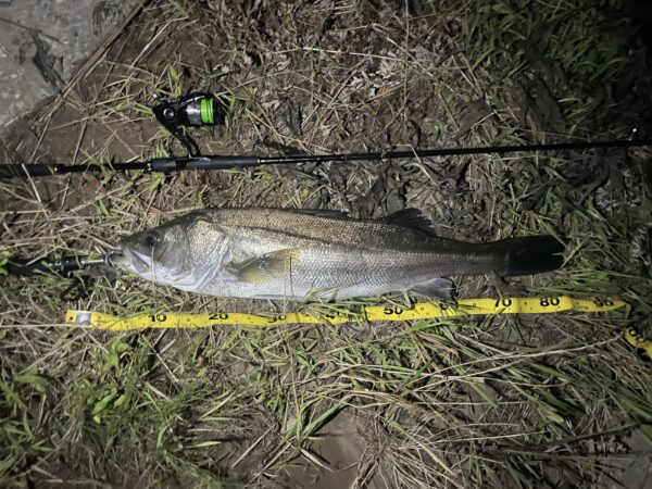 水深が1メートルもないポイントでしたが、しっかりシーバスは入ってきていました。