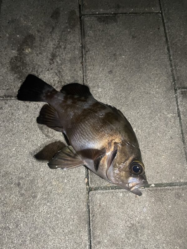 まずは岸際の表層付近をさぐっているとメバルが!