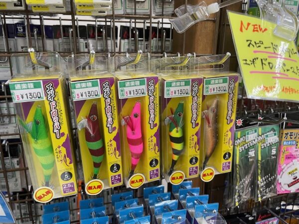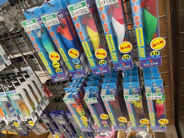 当店スタッフ 北岡もこの店頭のラインナップでスッテ エギなど自身のタックル